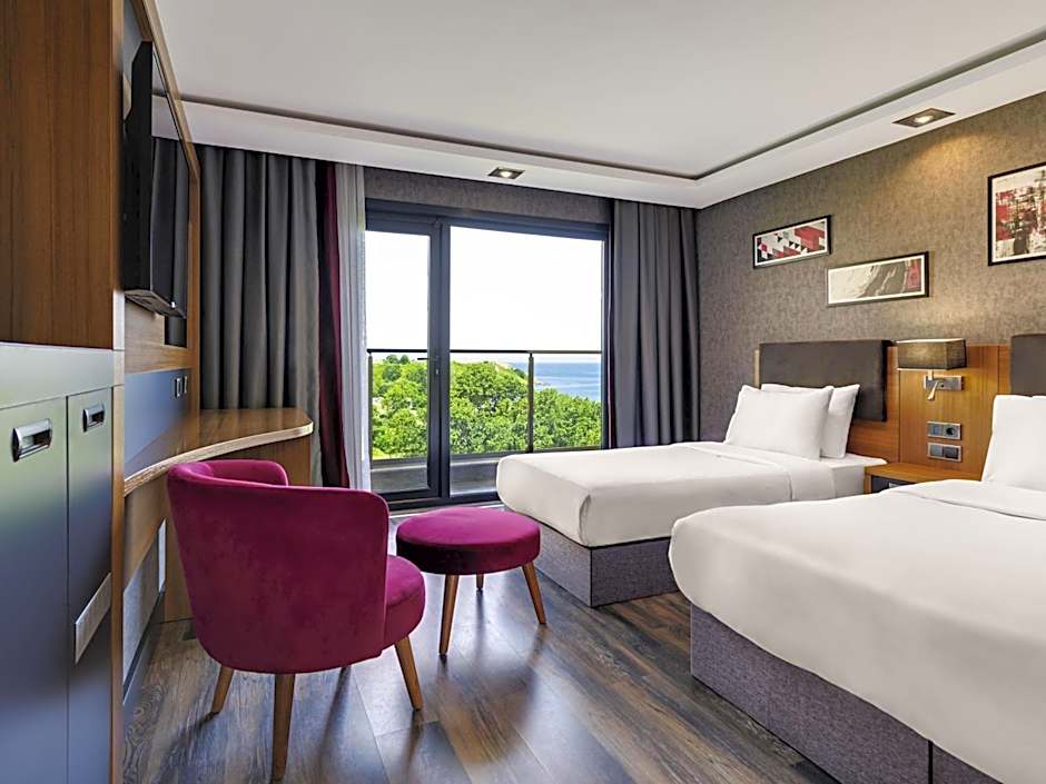The spacious triple room offers air conditioning, a wardrobe and a balcony.